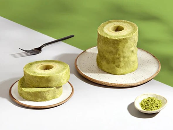 Green tea infused into every layer of our Matcha Spincake Baumkuchen. Please be aware: we use an original Japanese recipe that is not as sweet as North American cakes.
